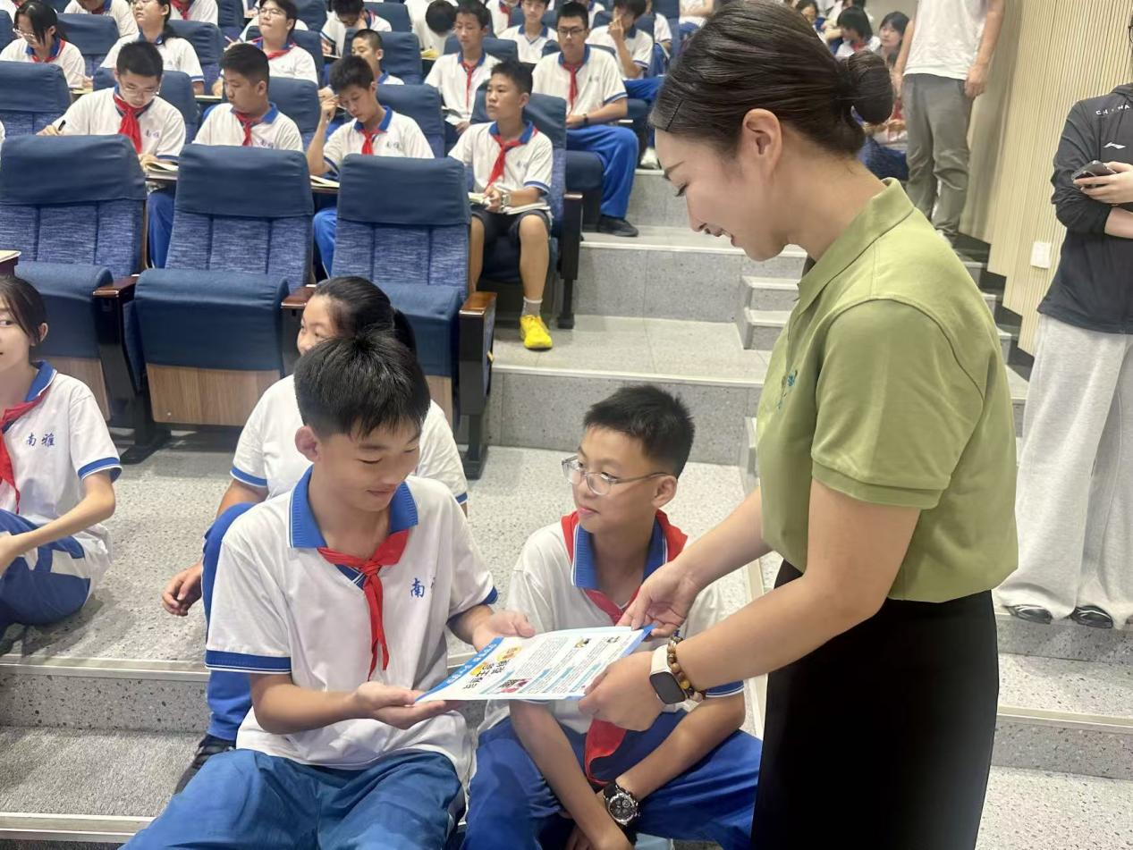 10月10日下午5时,在长沙市雨花区黎托街道托溪社区党总支的牵头组织下,一场以“远离毒品 健康成长”为主题的禁毒+反电诈宣传教育讲座在南雅双语实验中学报告厅顺利举行。本次活动作为托溪社区“党建聚力・和美星城”系列行动的重要环节,联合雨花区社会禁毒协会、南雅双语实验中学共同开展,组织初二年级900名师生参与,通过沉浸式学习筑牢青春防毒反诈的安全屏障。