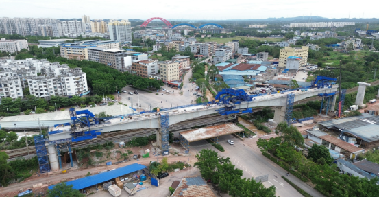 2025年11月11日,由中交一公局集团承建的钦北铁路桥改建项目控制性工程之一——跨新华路72米悬浇连续梁边跨顺利合龙,为后续中跨合龙奠定了坚实基础。