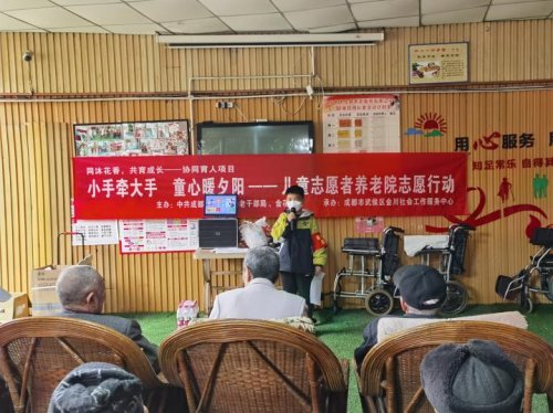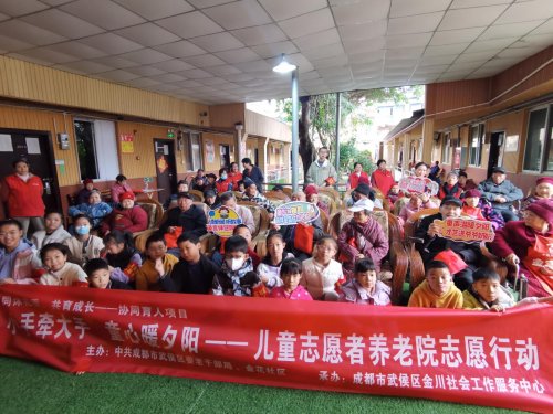 为进一步弘扬尊老爱老的传统美德,搭建儿童与老年群体间的关爱桥梁,11月12日下午,由武侯区委老干部局、金花社区主办,成都市武侯区金川社会工作服务中心承办的小手牵大手・童心暖夕阳 —— 儿童志愿者养老院志愿行动在天年颐养老院温情开展。20余名8-12岁的儿童青少年志愿者带着精心准备的节目,为这里的30余位老人送上了一场充满欢声笑语的“暖心盛宴”。