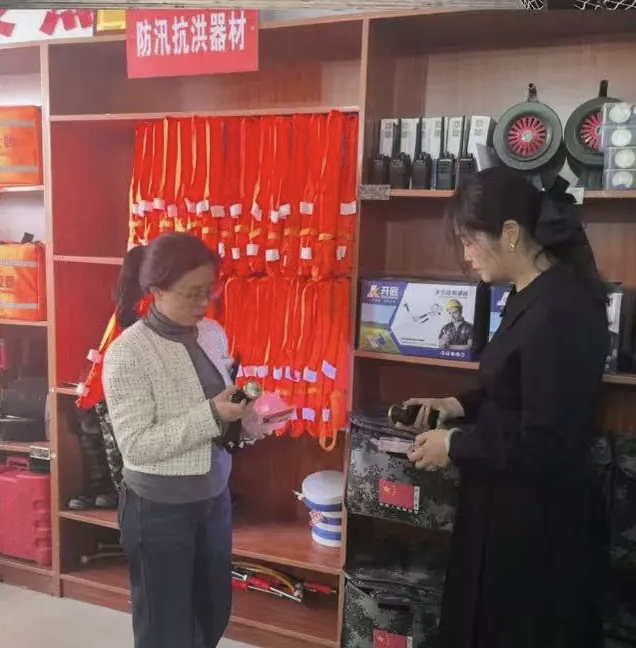 当前正值汛期,在古塘浮桥实地查看水位及桥面稳固情况,随后到应急仓库清点防汛物资储备,检查物资保管、更新及应急调用流程,确保物资足额到位、随时可调。